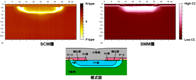 従って、SCM像で信号強度が小さな領域のキャリア濃度の高低の判断は、SMM像と合わせて行う必要がある。