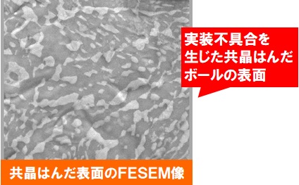 実装不具合を生じた共晶はんだボールの表面付着成分の分析を行う。